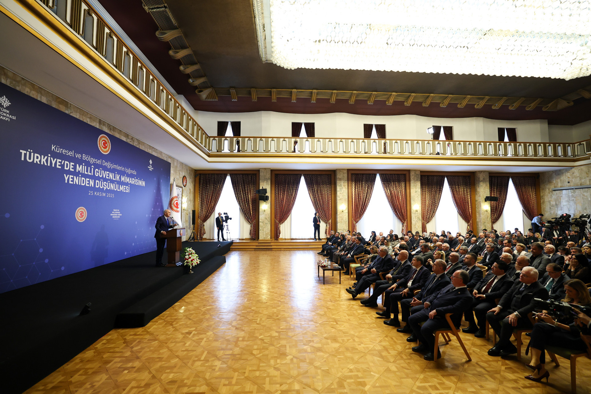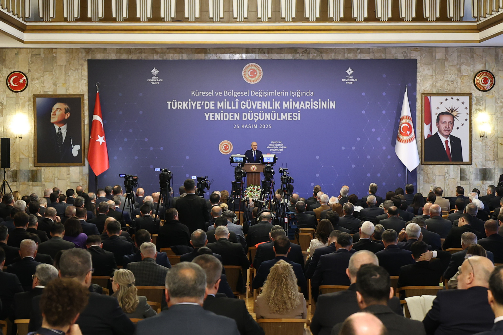 Türk Demokrasi Vakfı tarafından TBMM Başkanı Kurtulmuş'un himayesinde TBMM Tören Salonu'nda "Küresel ve Bölgesel Değişimlerin Işığında Türkiye'de Milli Güvenlik Mimarisinin Yeniden Düşünülmesi" programı düzenlendi.